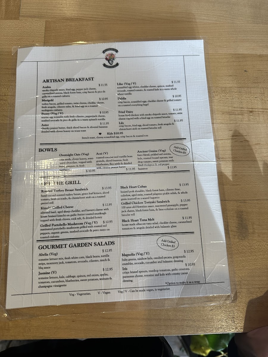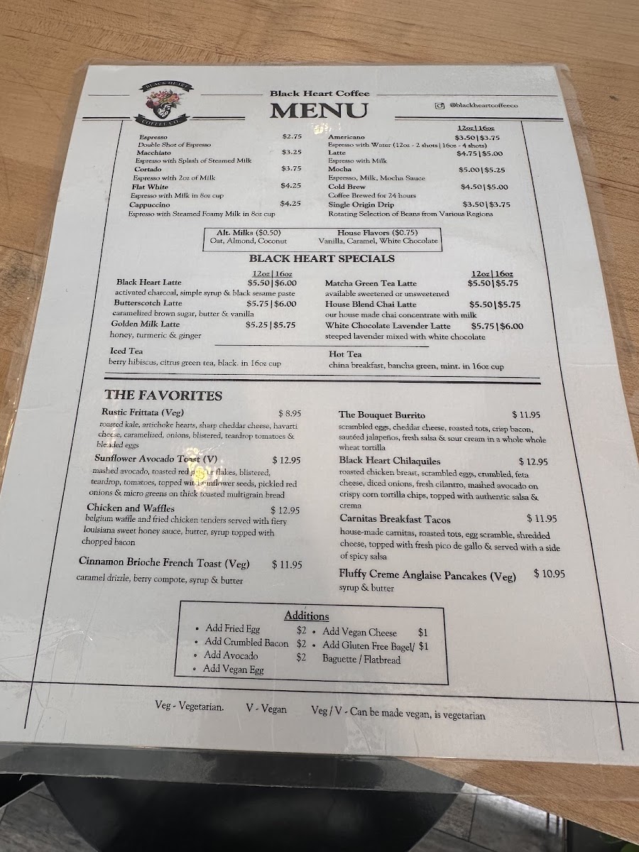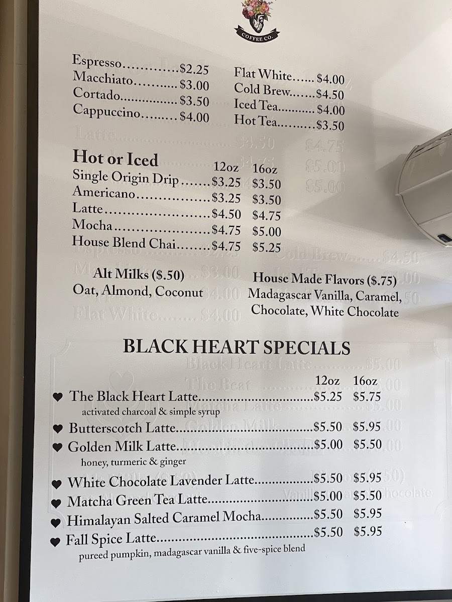 Black Heart Coffee Co. Menu
