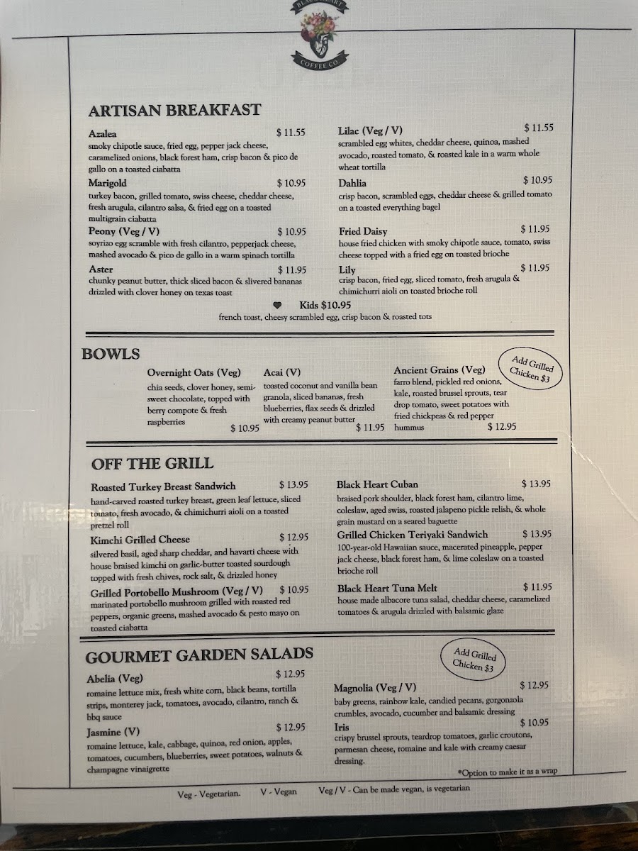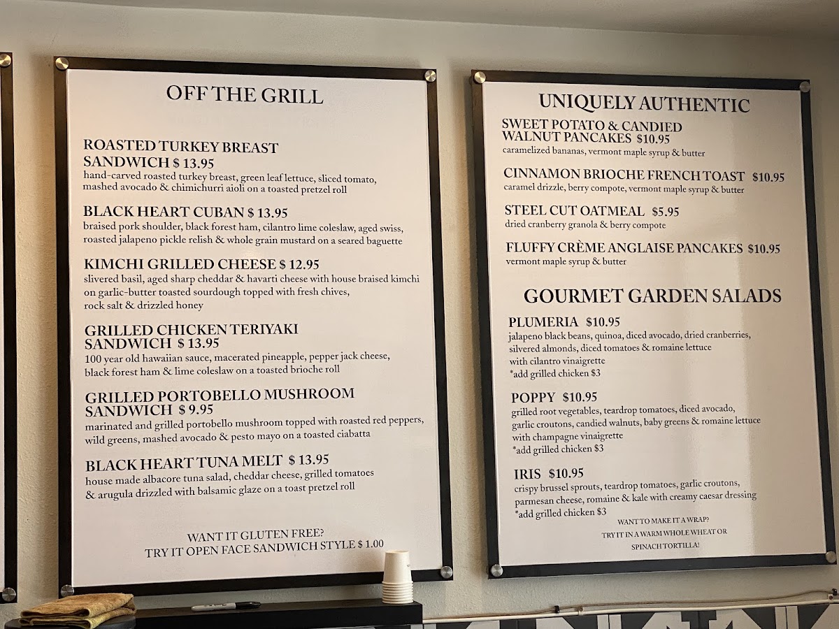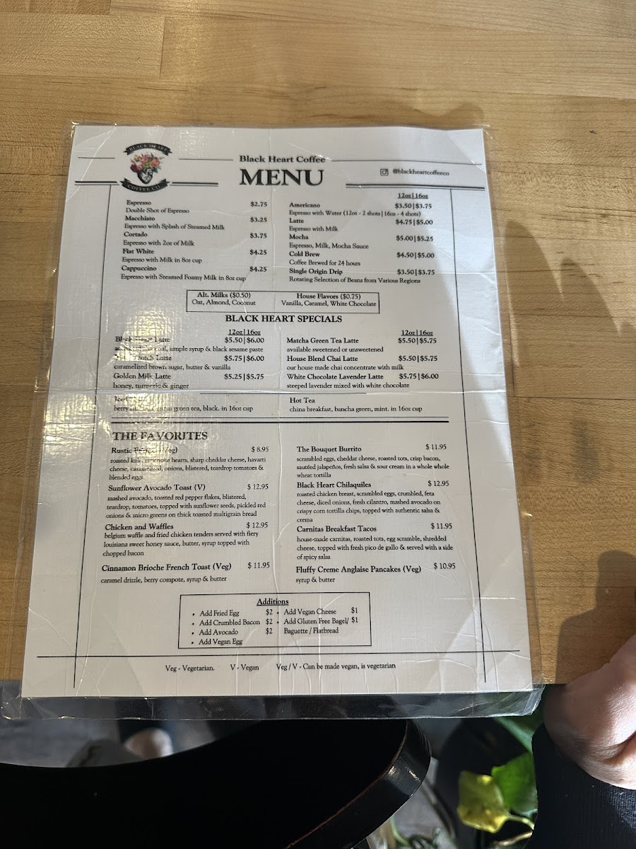 Black Heart Coffee Co. Menu